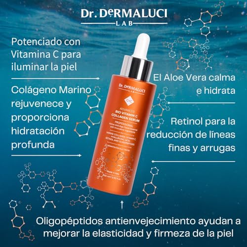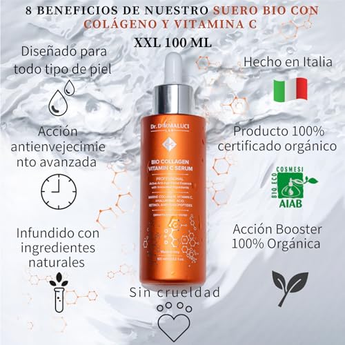 Serum Vitamina C Facial Colageno Acido Hialuronico Retinol BIO 100ML | Aloe Vera Oligopéptido | Anti-edad Antioxidante Iluminador Equilibrante Sebo |Cosméticos Naturales |Cuidado de la Piel
