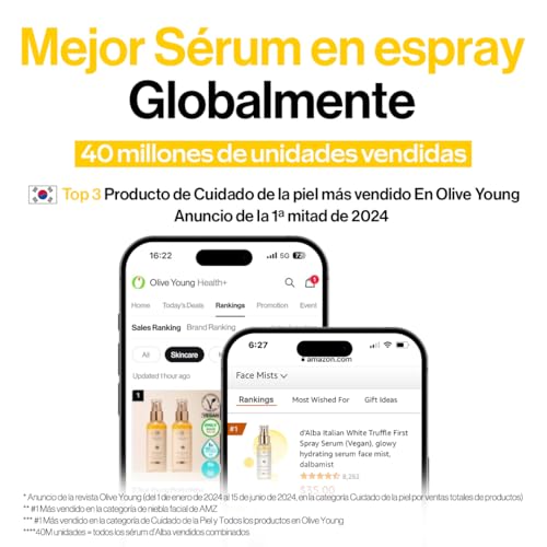 Éxito de Ventas Global: Ha vendido más de 40 millones de unidades combinadas y es reconocido como Top 3 en Olive Young (Corea) y número 1 en su categoría en Amazon (EE. UU.). Un éxito de ventas mundial más de 30 millones vendidas con más de 100.000 reseñas en el sitio web oficial de d’Alba.