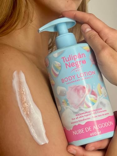 Tulipán Negro Loción Corporal con dosificador Nube de Algodón, máxima hidratación 400 ml, intensamente perfumado y para todo tipo de pieles
