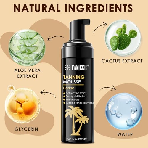 Mousse Autobronceador, Autobronceador Facial y Corporal, Gotas Bronceadoras Faciales, Mousse Autobronceadora, Tanning oil Ultrarrápido, Natural y Duradero, 200ml, Negro