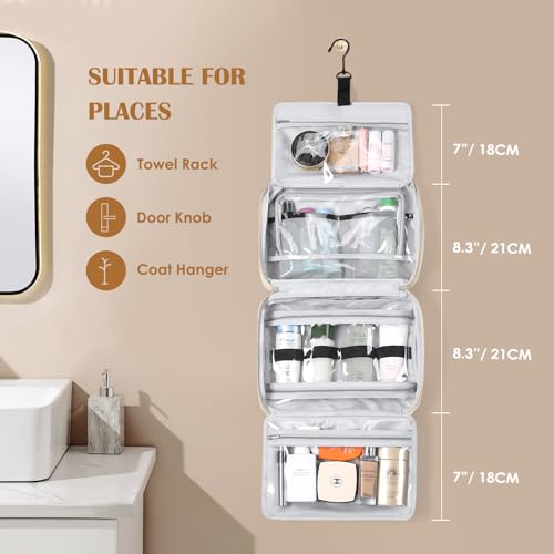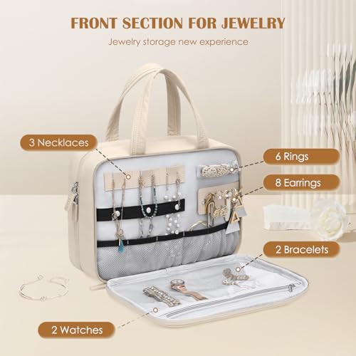 【Diseño Flexible】 El neceser colgante rontal de la bolsa de viaje tiene un compartimento adicional para anillos, pendientes, pulseras, collares y otras joyas. La bolsa actúa como un organizador y tiene un gancho de metal antideslizante para colgar en 360 grados, un asa de transporte que actúa como un lazo y una cremallera de dos vías para un acceso y almacenamiento rápidos.